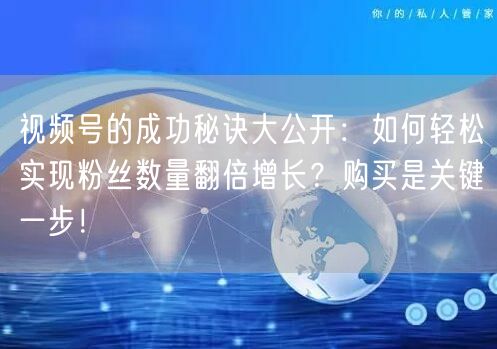 通过本文的介绍,相信你已经了解了视频号成功秘诀中的购买策略。在购买粉丝的同时,务必注重内容质量和创新性,保持对用户的关注和互动。只有这样,才能实现视频号的长期稳定发展。希望本文能为你带来启发和帮助!